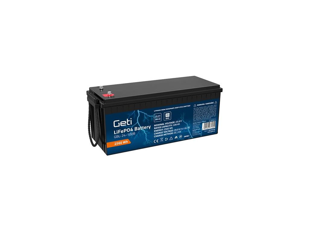 LiFePO4 baterie GETI řady GBL je určena pro solární systémy, karavany, lodě, rekreační vozidla, skůtry a další aplikace, které vyžadují časté a hluboké vybíjení. Jedná se o moderní, lehkou a výkonnou baterii se zabudovaným BMS (Battery Management System), který zajišťuje nejen rychlé nabíjení se zárukou dlouhé životnosti, ale také ochranu baterie před přebitím, nadměrným vybitím nebo zkratem. LiFePO4 baterie GETI je tak ideální náhradou za olověné baterie s násobně delší životností (až 6000cyklů) při nižší hmotnosti. LiFePO4 baterie je ekologická volba, která nabízí dlouhodobou úsporu nákladů a šetrnost k životnímu prostředí.