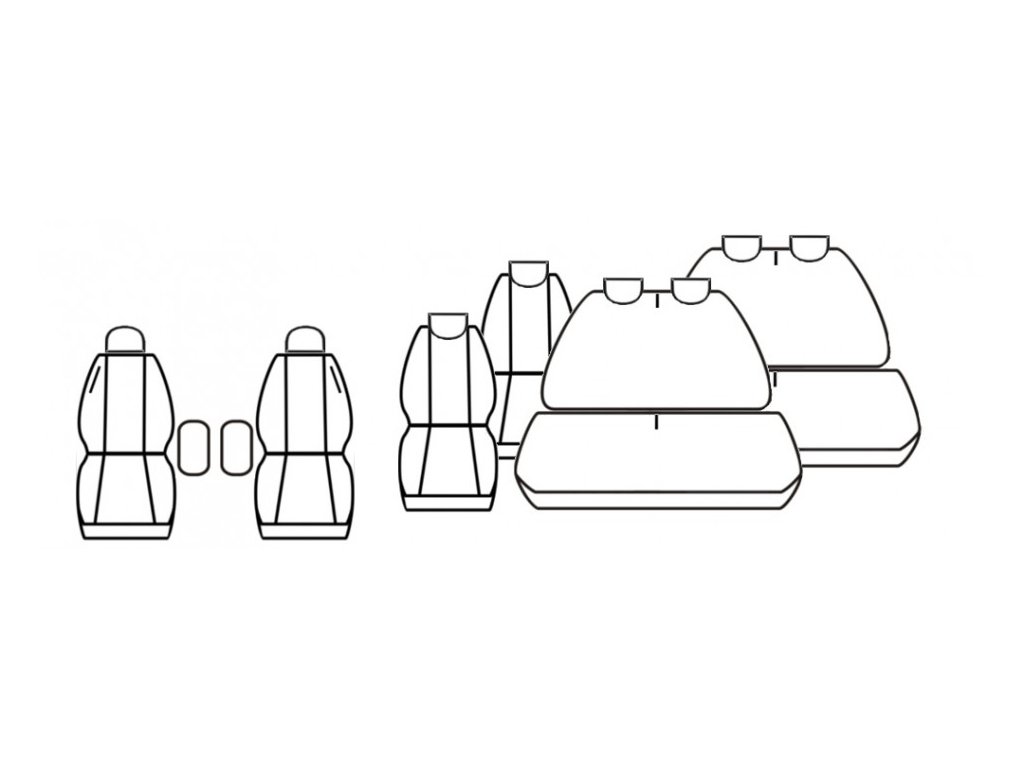 Sedadlo řidiče a spolujezdce, 2x loketní opěrka, 2 opěrky hlavy.