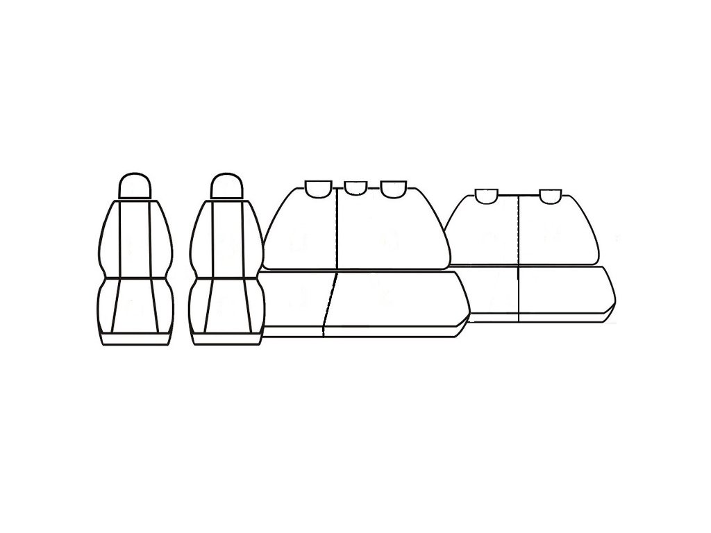 Na ilustrační fotografii je vyfocena sedačka z auta Škoda Octavia II. Vzhledem k tomu, že auta mají různá sedadla a autopotahy jsou šité přesně dle tvaru sedaček v konkrétním autě, potahy pro Váš vůz můžou se od ilustrační fotky tvarově lišit.