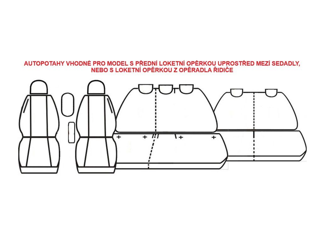 VYROBENO v EU. NOVINKA NA TRHU - ZAVÁDĚCÍ CENA! Silné polstrování, laminovaná spodní vrstva textilního materiálu. Potahy lze prát na 30°, velmi snadná montáž. Autopotahy dokonale pasují i na anatomicky tvarovaných sedadlech, a laminace autopotahy zpevňuje a zabraňuje sklouzávání potahů ze sedadel. Sada autopotahů na celé auto včetně povlaků hlavových opěrek. Vhodné pro auta s bočními airbagy, ale lze použít i pro auto, které boční airbag nemá (speciální šev). Zboží je atestováno - ATEST 8SD.