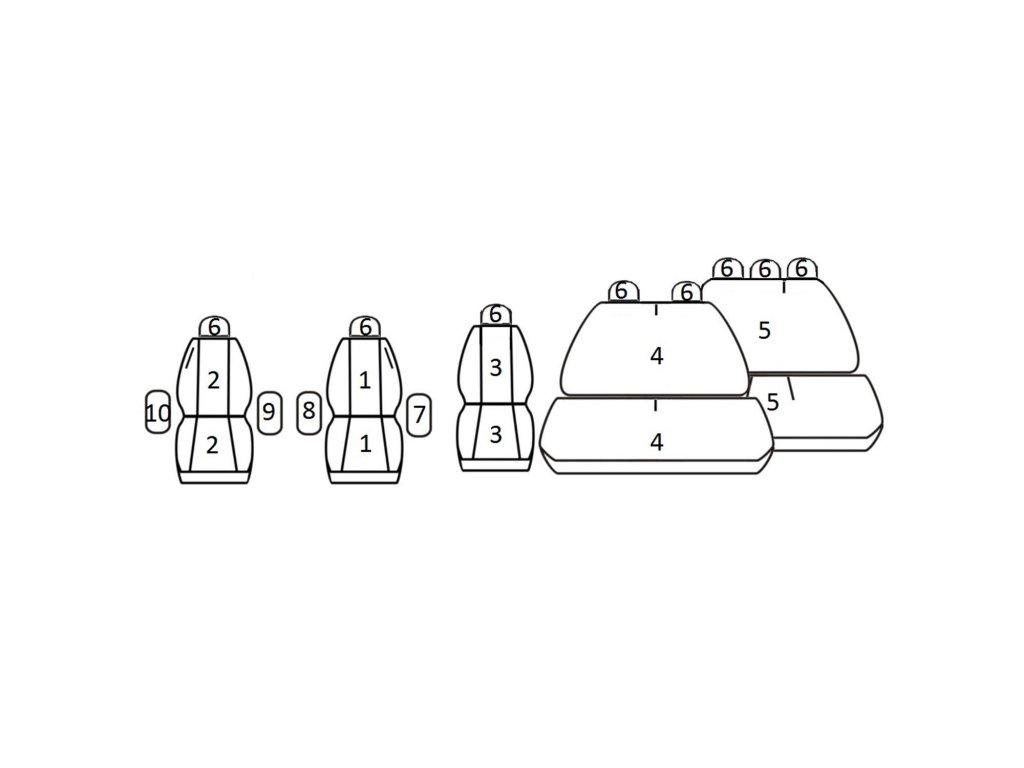 Autopotahy Volkswagen T5, 8 míst, 1+1+2+1+3, od r. 2003-2015.