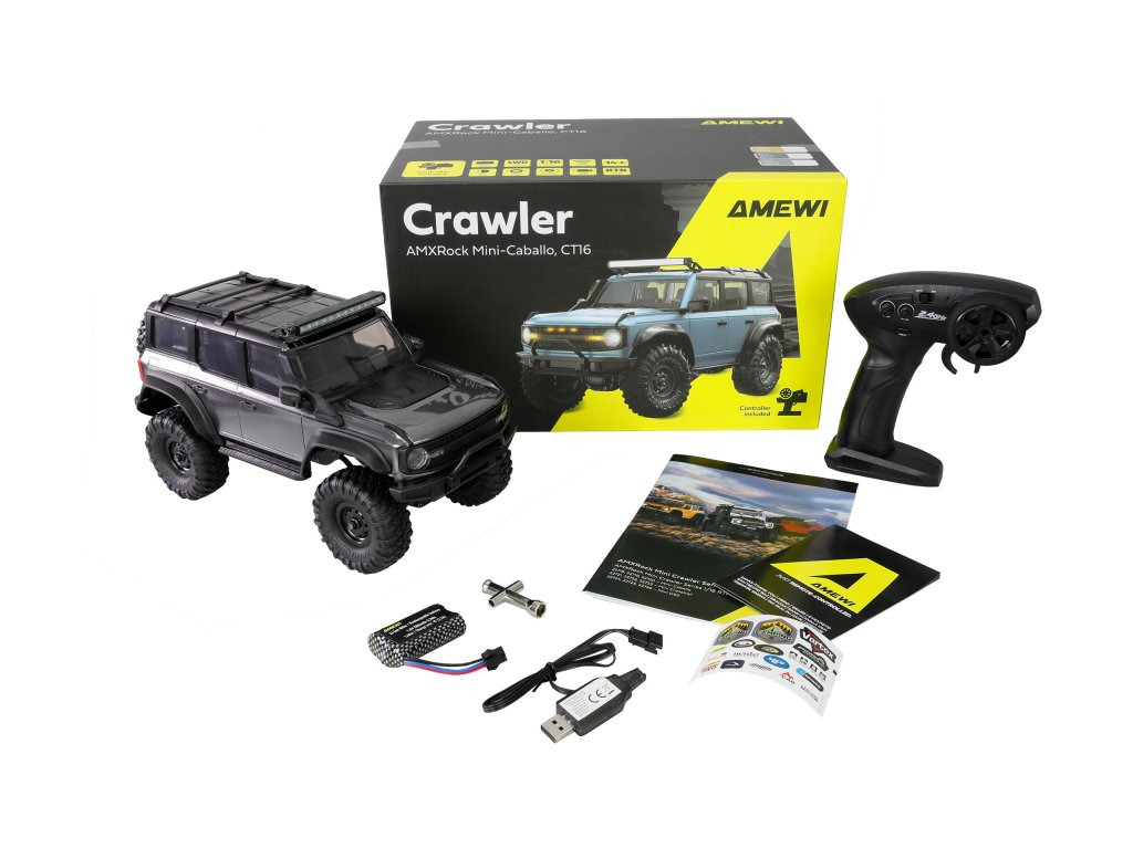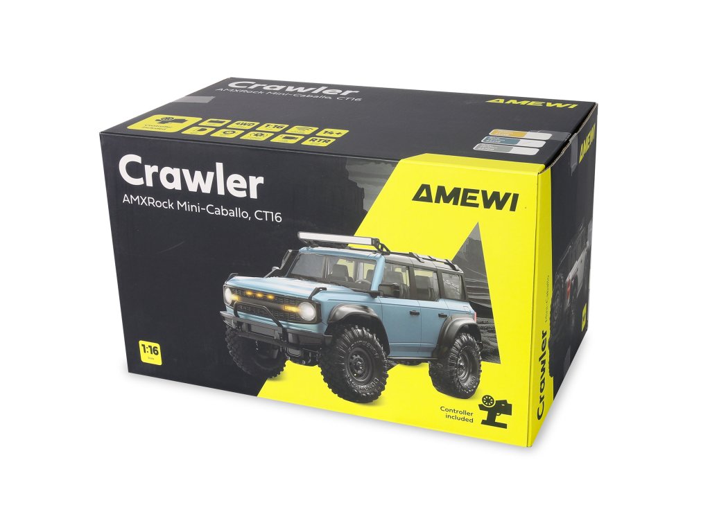 Caballo v měřítku 1:16 je malý, výkonný crawler, který zaujme svou sofistikovanou technologií, jednoduchou elektronikou a robustní konstrukcí. Díky přepínatelnému LED osvětlení vpředu a vzadu (aktivuje se jediným stisknutím tlačítka světla) poskytuje vynikající osvětlení zvolené trasy za soumraku, zatímco přídavná LED světelná lišta na střeše (aktivuje se dvěma rychlými stisknutími tlačítka světla) nabízí realistický vzhled a dobrou viditelnost. Propracovaná karoserie v měřítku má rychloupínací zadní panel, který umožňuje snadnou výměnu baterie nebo jinou údržbu podvozku. Integrovanou regulaci plynu lze také použít jako tempomat, což umožňuje přesné a uvolněné plazení i v náročném terénu. Díky krytu odolnému proti stříkající vodě (standard IPX4) je Caballo připraven k použití i ve vlhkých podmínkách. Výkonný pohon všech kol 4WD zajišťuje optimální trakci na široké škále povrchů, podpořený nezávislým zavěšením pro maximální terénní schopnosti a stabilitu. Vysoce přesná ložiska v celém vozidle zaručují dlouhodobý a plynulý výkon, zatímco robustní kovový rám poskytuje zvýšenou tuhost. Jako model RTR (Ready-to-Run) se Caballo dodává kompletně smontovaný a připravený k jízdě – stačí jej vybalit, nabít baterii a je připraven vyrazit.