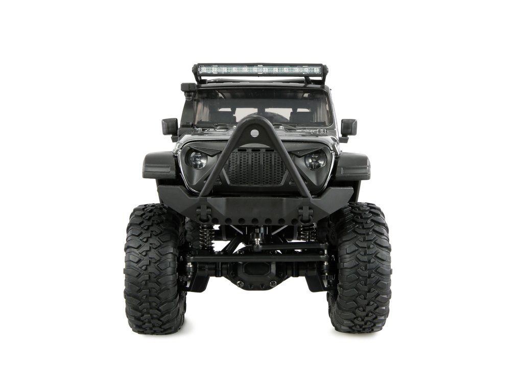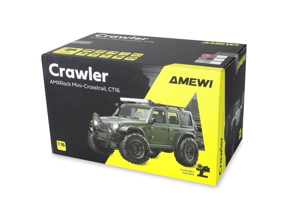 Crosstrail v měřítku 1:16 je výkonný crawler, který zaujme svým sofistikovaným inženýrstvím, jednoduchou elektronikou a robustní konstrukcí. Díky čtyřsměrně přepínatelným LED světlům vpředu a vzadu (aktivovaným jediným stisknutím tlačítka světla) poskytuje vynikající osvětlení zvolené trasy za soumraku, zatímco přídavná LED světelná lišta na střeše (aktivovaná dvěma rychlými stisknutími tlačítka světla) nabízí realistický vzhled a dobrou viditelnost. Propracovaná karoserie v měřítku má rychloupínací zadní panel, který umožňuje snadnou výměnu baterií a další údržbu podvozku. Integrovanou regulaci plynu lze také použít jako tempomat, což umožňuje přesné a uvolněné plazení i v náročném terénu. Díky krytu odolnému proti stříkající vodě (standard IPX4) je Mini Crosstrail připraven k použití i ve vlhkých podmínkách. Výkonný pohon všech kol 4WD zajišťuje optimální trakci na široké škále povrchů, podpořený nezávislým zavěšením pro maximální terénní schopnosti a stabilitu. Vysoce přesná ložiska v celém vozidle zaručují dlouhodobý a plynulý výkon, zatímco robustní kovový rám poskytuje zvýšenou tuhost. Jako model RTR (Ready-to-Run) se Crosstrail dodává kompletně smontovaný a připravený k jízdě – stačí jej vybalit, nabít baterii a můžete vyrazit.