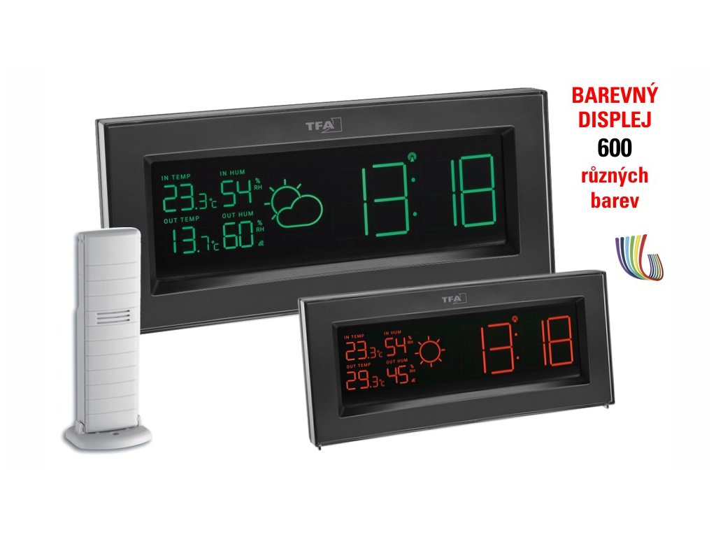 Meteostanice TFA Coloris disponuje špičkovým barevným displejem s vysokým kontrastem, který umožňuje několik režimů zobrazení: automatické prolínání mezi 600 barvami textu, změna barvy textu na základě aktuální venkovní teploty (22 barev) nebo pevně nastavená barva textu. Stanice Coloris dále nabízí: