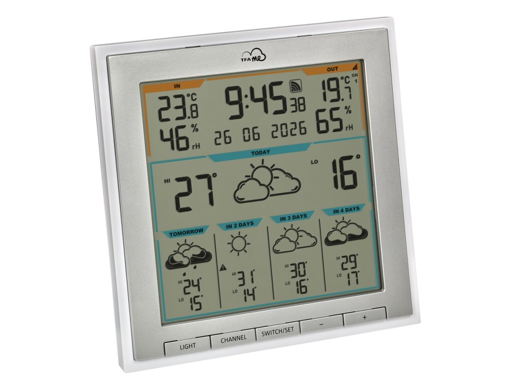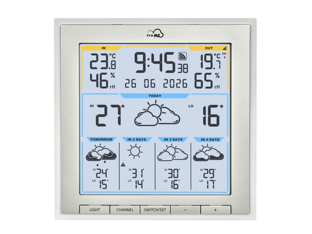 Jaké bude počasí? Bude jasno nebo zamračeno? Pokud potřebujete, aby vaše meteostanice zobrazovala skutečně profesionální předpověď počasí, systém TFA.ME je přesně pro vás. Tato meteostanice pravidelně stahuje z internetu přes WiFi kvalitní německou předpověď počasí ze serveru wetter.com.