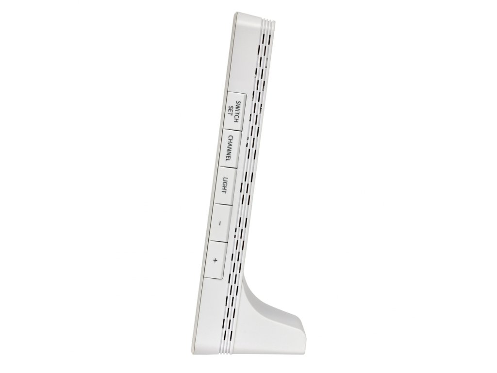 Moderní design se hodí do každého interiéru. Díky orientaci na výšku se vnitřní jednotka obzvláště hodí na stolky na poličky, které jsou úzké nebo na nich už nezbylo moc místa. Stojánek na zadní straně je snímatelný, takže meteotasnici lze snadno i zavěsit na stěnu.