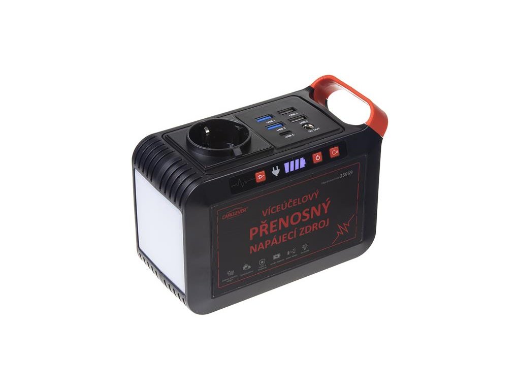 Tato multifunkční nabíjecí stanice, nabíjí různé spotřebiče a lze ji použít jako zdroj energie pro věci, jako je 12 V automobilový vysavač nebo ventilátor, nebo jako zdroj energie pro stanování či camping.