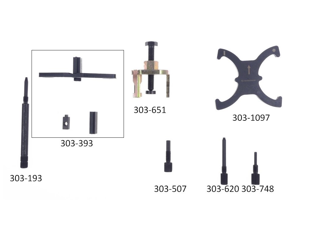 Použití při montáži a demontáži vačkových hřídelí (tzv. vaček), k aretaci klikové hřídele (tzv. kliky), výměně rozvodového řetězu, kontrole a seřízení časování vačky apod. Určeno pro vznětové a zážehové motory Ford, Land Rover, Mazda, Suzuki a Volvo.