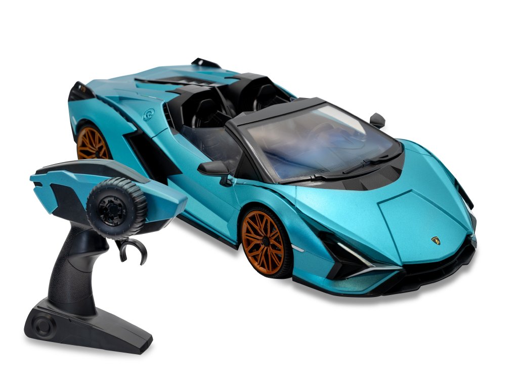 RE.EL Toys RC auto Lamborghini Sian 1:16 modrá metalíza, proporcionální RTR LED 2,4Ghz