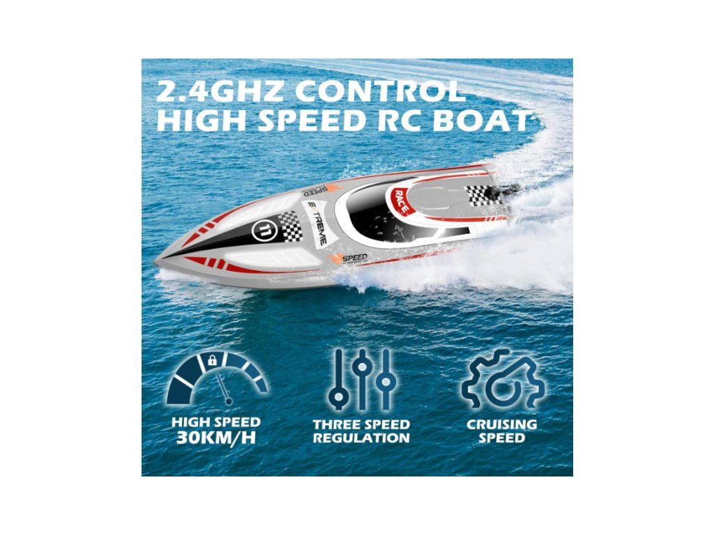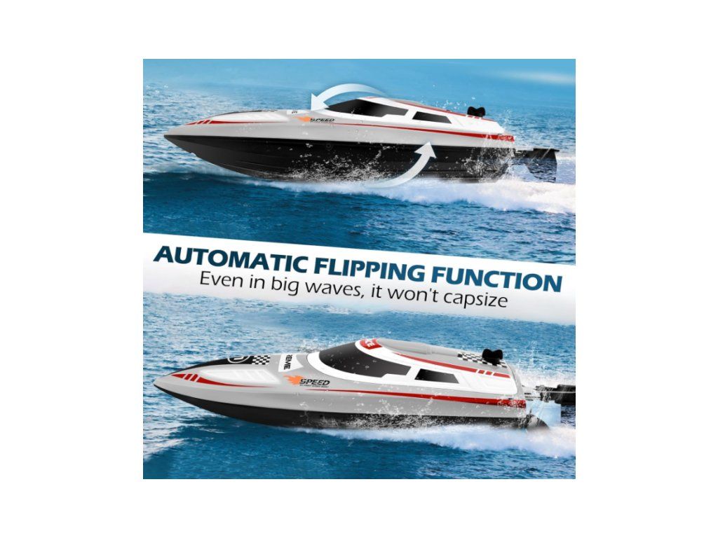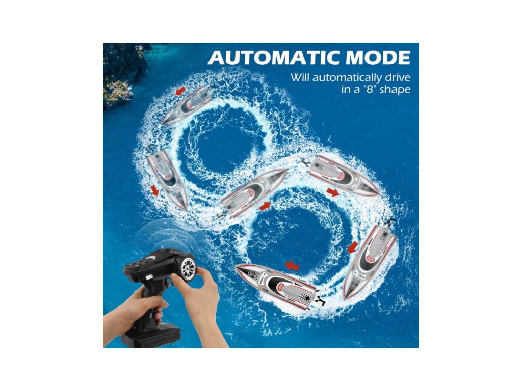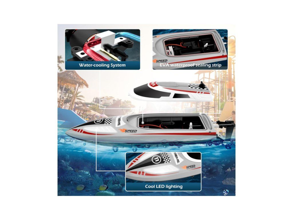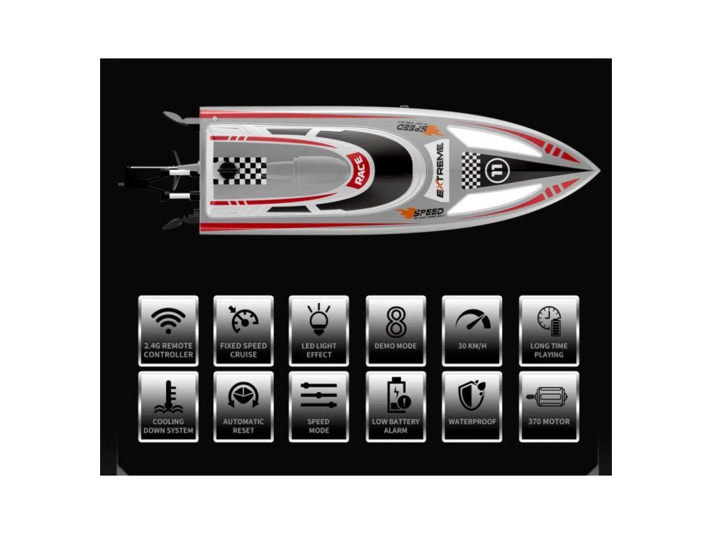 Loď na dálkové ovládání V003RC loď je skvělý způsob, jak se zabavit v létě u vody. Model V003 je ideální volba díky svým funkcím. Dokáže na jedno nabití plout cca 30 minut díky akumulátoru LiPo 7,4V 1200 mAh. Velikou výhodou je signalizace kapacity akumulátoru a dosahu, takže se vám nestane, že byste museli pro loď plavat. Se silným motorem si užijete spoustu zábavy.Vodou chlazený motorRC loď V003 je rychlý člun na dálkové ovládání, který má vodou chlazený motor. Vodní chlazený prodlužuje životnost a zabraňuje přehřívání motoru. Naprogramovaná je i DEMO verze, kdy loď pluje ve tvaru 8. Další skvělou funkcí je ,,automatic reset,, kdy se vám loď otočí při převrácení zpět na hladinu, takže můžete bez obav vyrazit i do vln.3 rychlostní režimyRychlost lodi se pohybuje okolo 30 km/h, pomocí tlačítka na dálkovém ovládání můžete střídat 3 rychlostní režimy nebo využít funkci tempomatu. Dokáže plout všemi směry, dokonce má i zpátečku. Loď je vybavena LED osvětlením, které je krásně viditelné i při noční plavbě, ale také má signalizační funkci. Dálkové ovládání vám zapípá, loď bliká a přejde do pomalého režimu v případě, že je akumulátor na hraně kapacity. V případě, že dojedete až na hranu dosahu, dálkové ovládání vám začne blikat.Dosah dálkového ovládání je 150m, funguje na frekvenci 2,4 Ghz. Do dálkového ovladače potřebujete 4xAA baterie. Obsah balení: RC loď V003 Dálkové ovládání USB nabíječka Akumulátor Náhradní lodní šroub Klíček pro výměnu lodního šroubu Technické parametry: Délka: 35 Šířka: 9.2 Výška : 9.2 Rychlost: 30 Výdrž: 30 Kapacita akumulátoru: 1200 Napětí akumulátoru: 7.4 Typ akumulátoru: Li-Po Typ nabíječky: USB Výměnný akumulátor: ano Napájení ovladače: 4xAA Vodou chlazený motor: ano Barva: šedá Proporcionální plyn: ano Proporcionální zatáčení: ano LED osvětlení: ano Dosah: 150 Vodotěsnost: anoBuďte první, kdo napíše příspěvek k této položce.