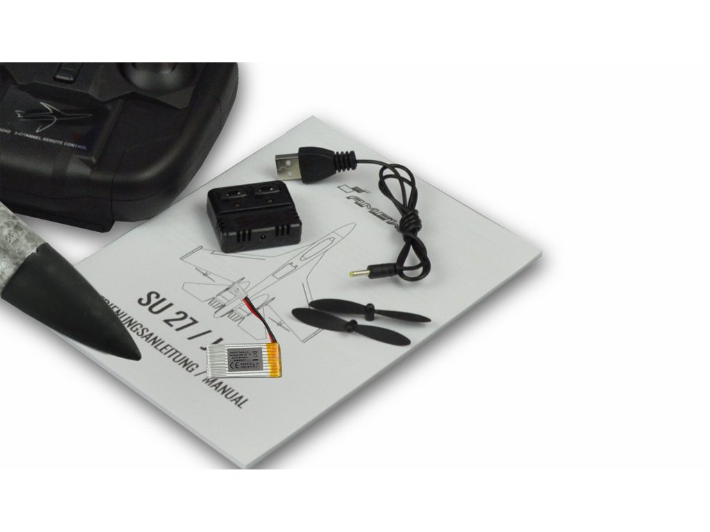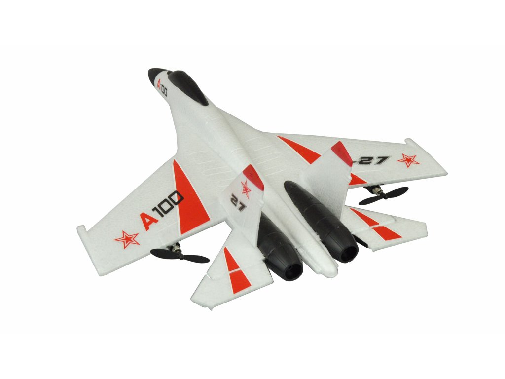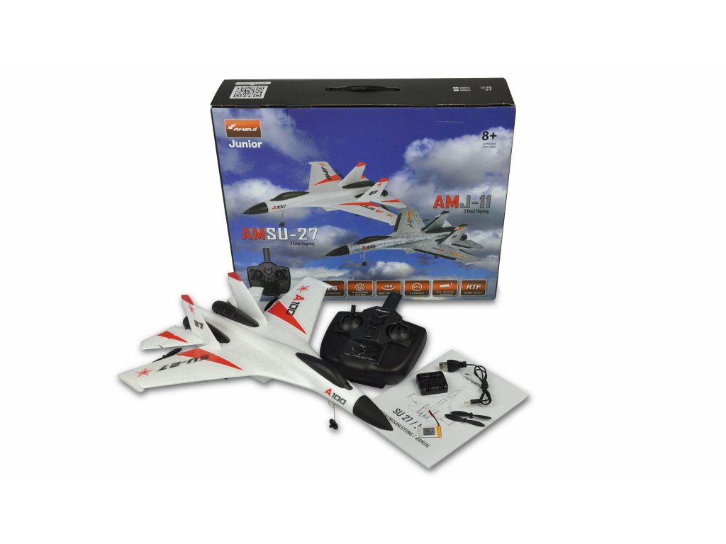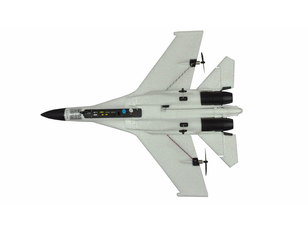 Replika dvoumotorového ruského stíhacího letounu SU-27. Zůstává dnes jedním z nejdůležitějších stíhacích letounů v ruském letectvu a byl vyvinut jako přímý protějšek amerického F-15 Eagle. Model zaujme svými letovými výkony a plně automatickou stabilizací polohy (gyro), která modelu dodává velmi příjemné letové vlastnosti a je vhodný i pro začátečníky. Model je dodáván RTF (Ready to fly), tzn. h není potřeba žádné šroubování, vrtání ani lepení. Vestavěné gyro okamžitě převezme stabilizaci letu a pilot se může soustředit na skutečné ovládání modelu. Jakmile není proveden žádný řídicí pokyn, model se vrátí do horizontálního přímého letu. Pomocí tlačítka na vysílači lze gyro vypnout např. pro přemety. Pokud by se letová situace stala nejistou, gyroskopický spínač slouží jako záchranné lano. Ihned po stisknutí tlačítka se model automaticky vrátí do stabilní letové polohy. Robustní a nárazuvzdorný materiál (EPP) také umožňuje tvrdší pády a přistání. Snadno se opravuje nebo lepí.