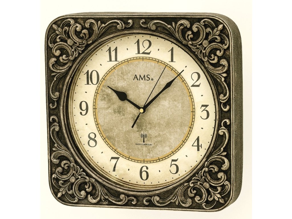 Nástěnné hodiny s dekorem patiny, řízené rádiovým signálem.