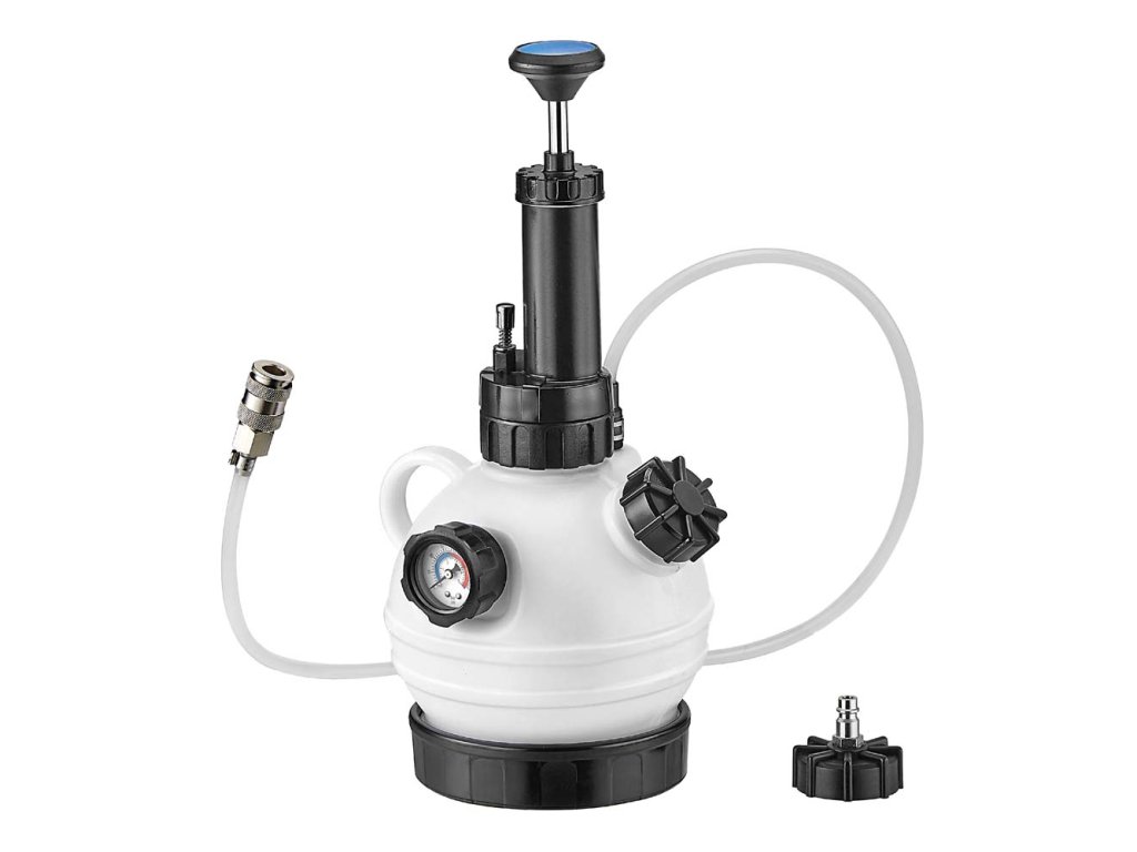 V nádobě se pomocí ruční pumpičky vytvoří přetlak, který kapalinu následně žene do systému brzd či spojky – není tedy nutné ji neustále pumpovat manuálně a práci zvládne jedna osoba.