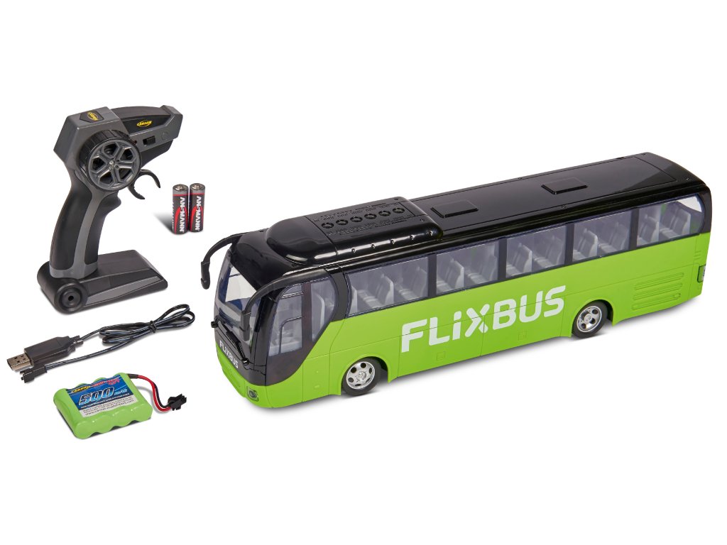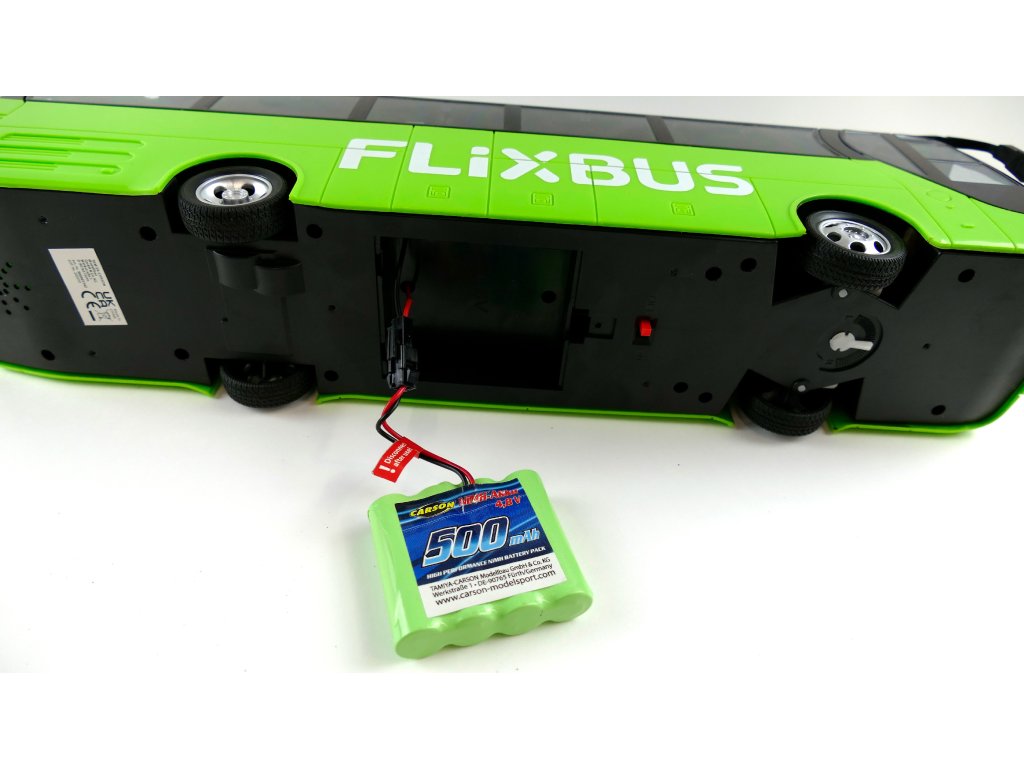 Až 60 minut jízdy zajišťuje neomezené potěšení. Flixbus je dodáván včetně bezchybného systému dálkového ovládání 2,4 GHz, 500 mAh baterie pohonu, nabíječky, baterií vysílačem a pokynů. Pobavte se s naším CARSON Flixbus! Koupit - Nabít - Řídit!
