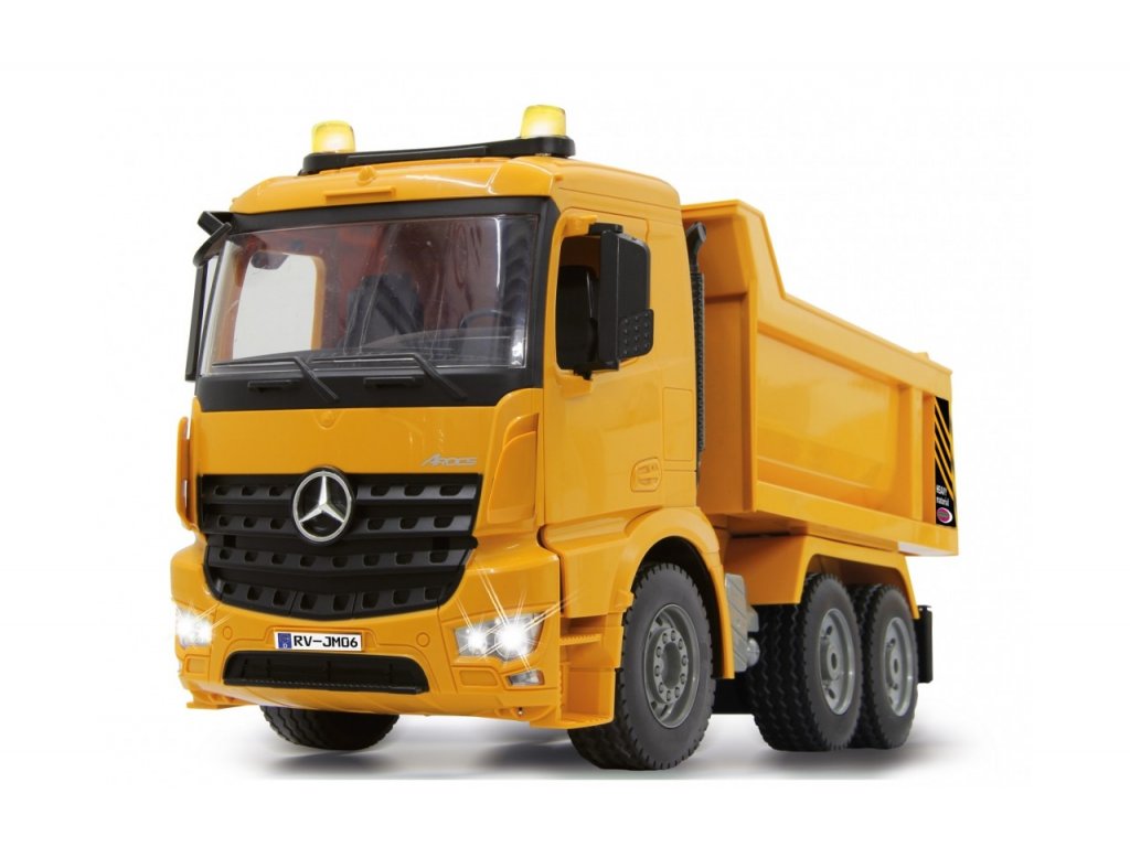 Licencovaný model Mercedes-Benz Arocs DUMP TRUCK 4WD je do detailu propracovaný RC model sklápěče, vyrobený v měřítku 1:20, který pracuje na frekvenci 2.4 GHz, jede vpřed, vzad a zatáčí jako skutečné auto. Hlavní předností je funkční korba, kterou je možno ovládat z dálkového ovladače. Další velkou předností je zvukový modul, který dokáže simulovat velkou spoustu zvuků auta, jako je start motoru, zrychlení, klakson a houkačky. Samozřejmně je možné všechny tyto zvuky vypnout. Model také disponuje režimem DEMO, jenž Vám představí všechny funkce modelu, a také funkce AUTO-vypnutí, která vůz zcela vypne při nečinnosti. U modelu je možnost i jednoduchého naprogramování. Radost jistě také udělá LED osvětlení a pravé gumové pneumatiky, díky kterým má auto skvělou přilnavost. Skvělý vůz na staveniště, stačí jen vyrazit.