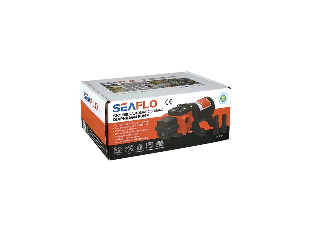 Čerpadla Seaflo 23C se vyznačují samonasávací schopností (-1.8 m) a možností chodu na sucho (čerpadlo běží bez čerpané kapaliny, a to aniž by došlo k poškození čerpadla). Díky těmto funkcím můžete čerpadlo nainstalovat na nádrž, sud či IBC kontejner.